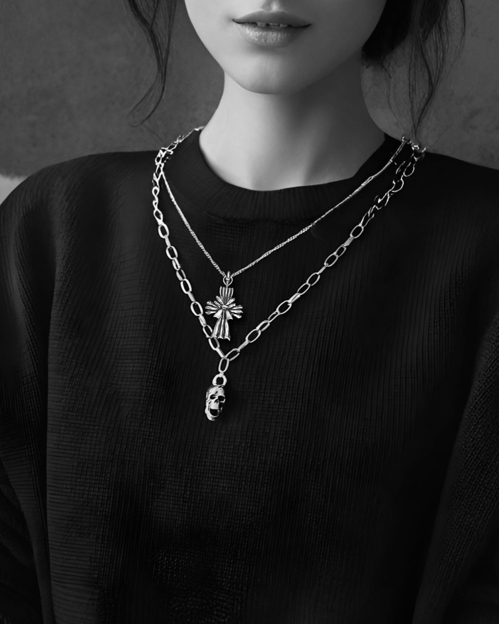 結びは「縁」や「願い」を形にする、日本の古い象徴。その結び目が広がり、光のようにほどけていく瞬間をクロスという象徴でデザインしシルバーで表現しました。